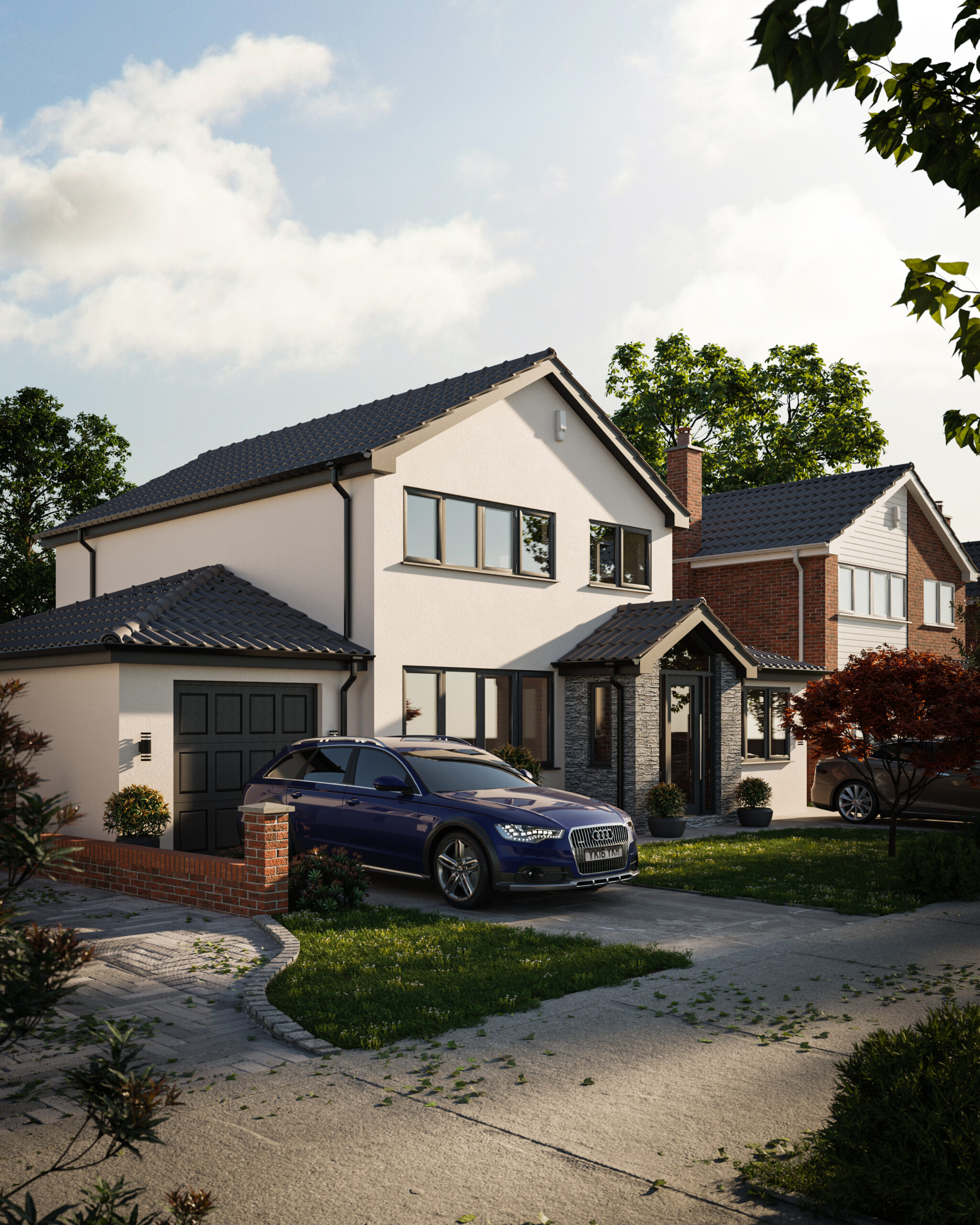 Dramatically elevating the kerb appeal of the property, this project involved the creation of a grey brickwork front porch with glazed element. The matching single storey rear extension created space for an open plan orangery featuring Velux roof lights, glazed gable end and bifolding doors. Meanwhile, a first floor extension brought additional space to the bathroom and bedroom spaces.